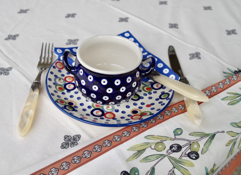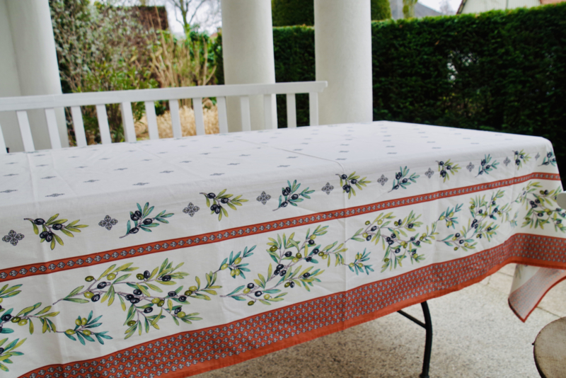 Provencaals kleed in subtile kleuren met olijven, 100% katoen